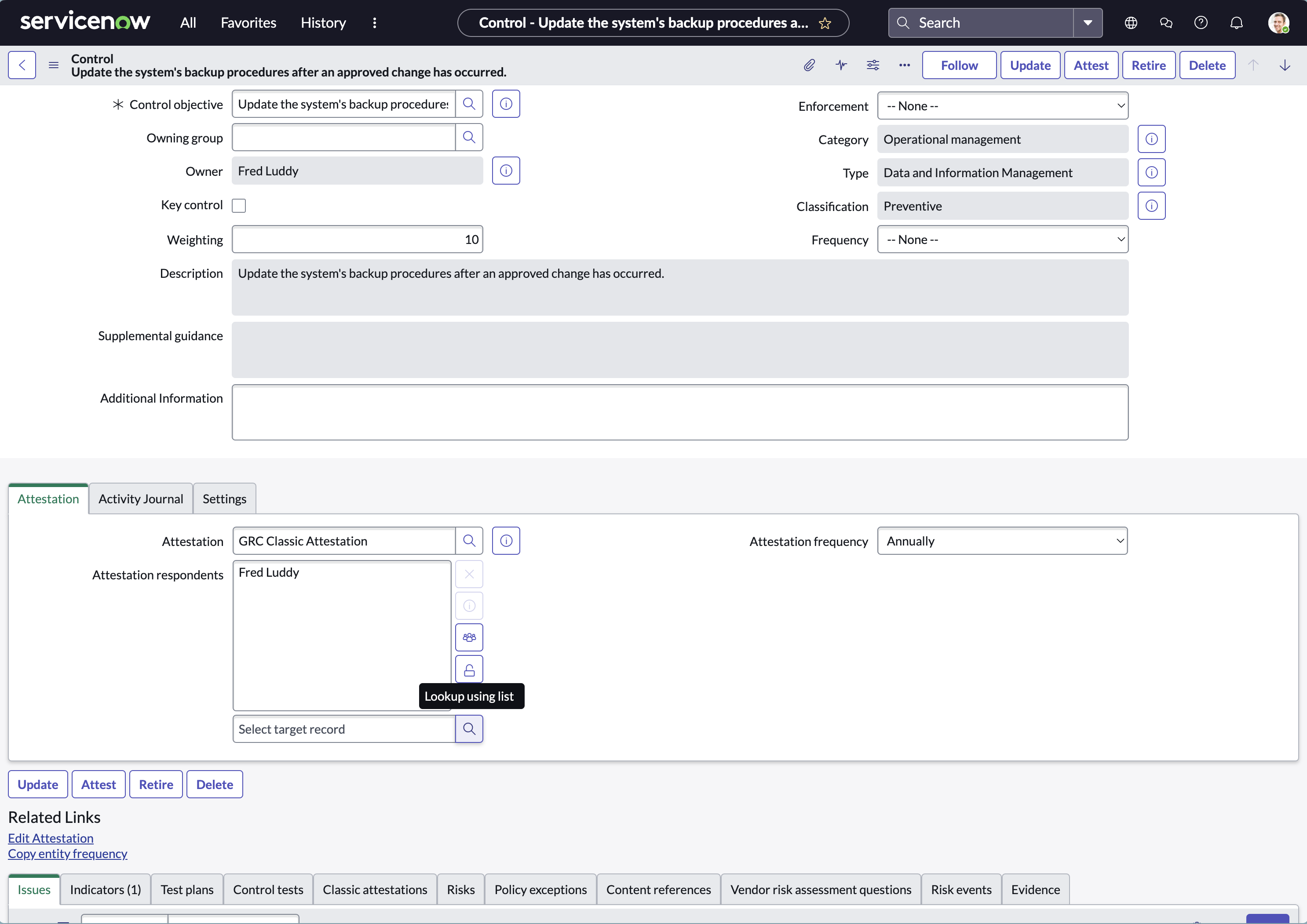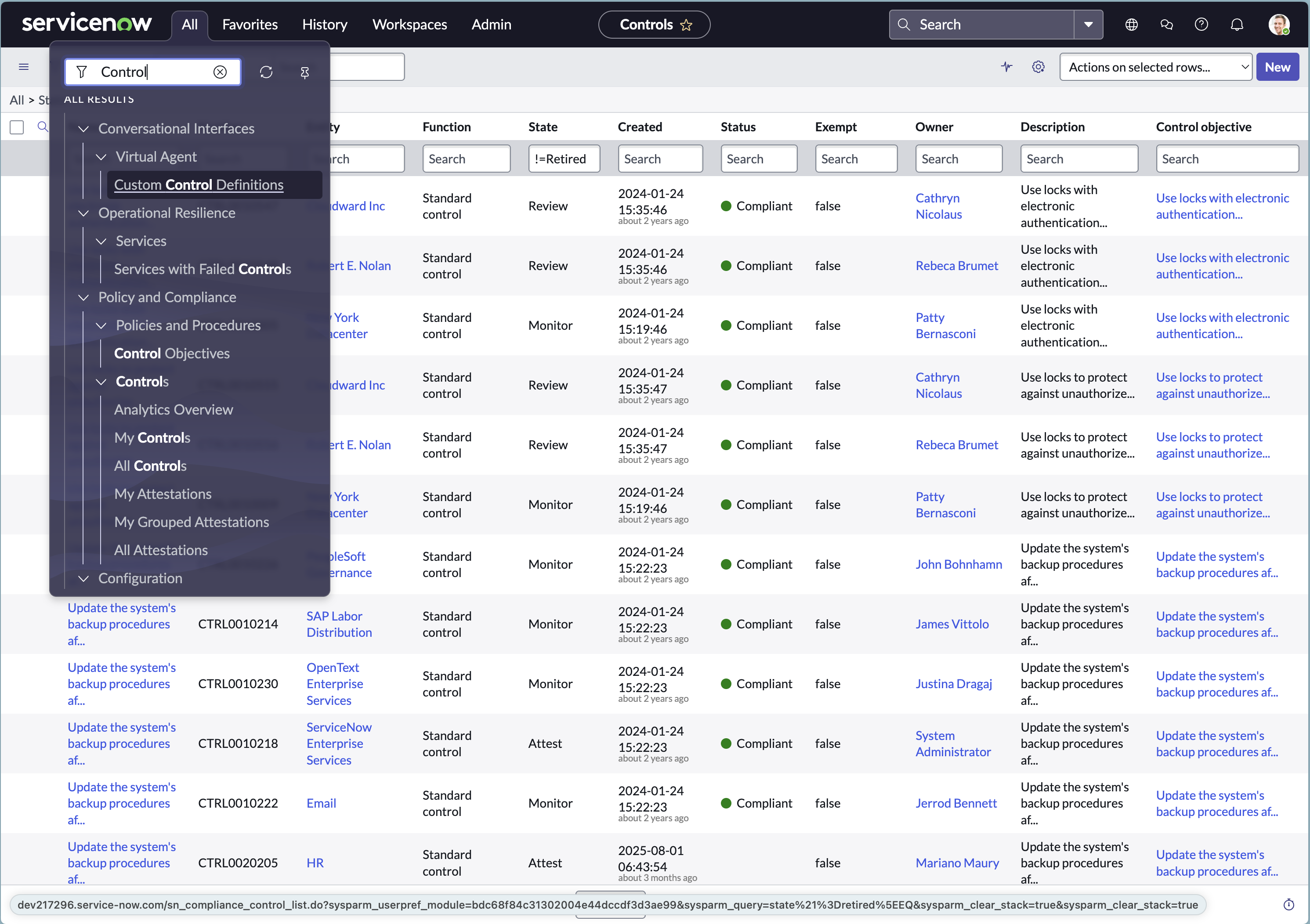 - Apply the filter: Table = sn_compliance_control