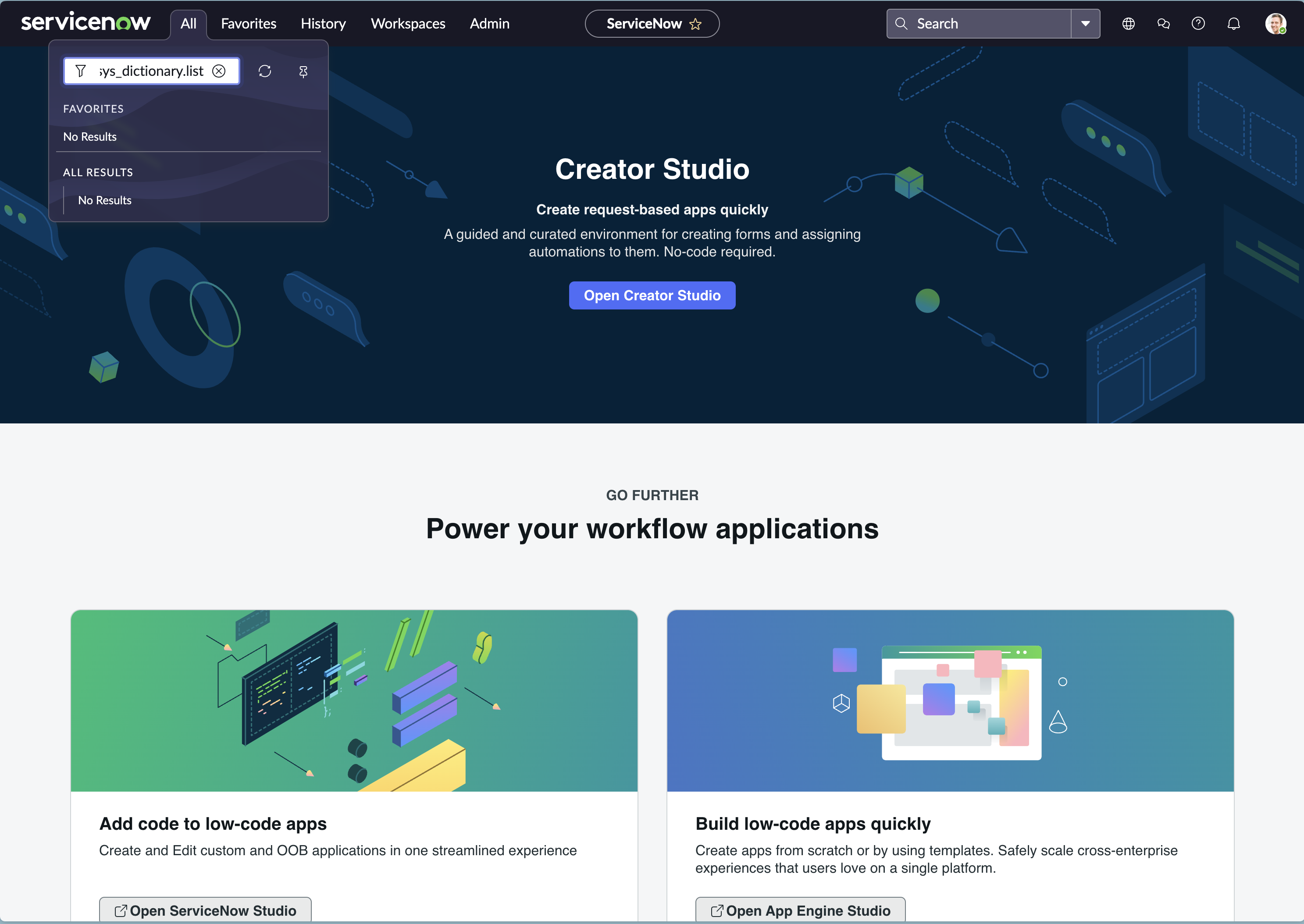 - Navigate to sys_dictionary.list. Enter ‘sys_dictionary.list’ in the navigation bar and hit Enter.